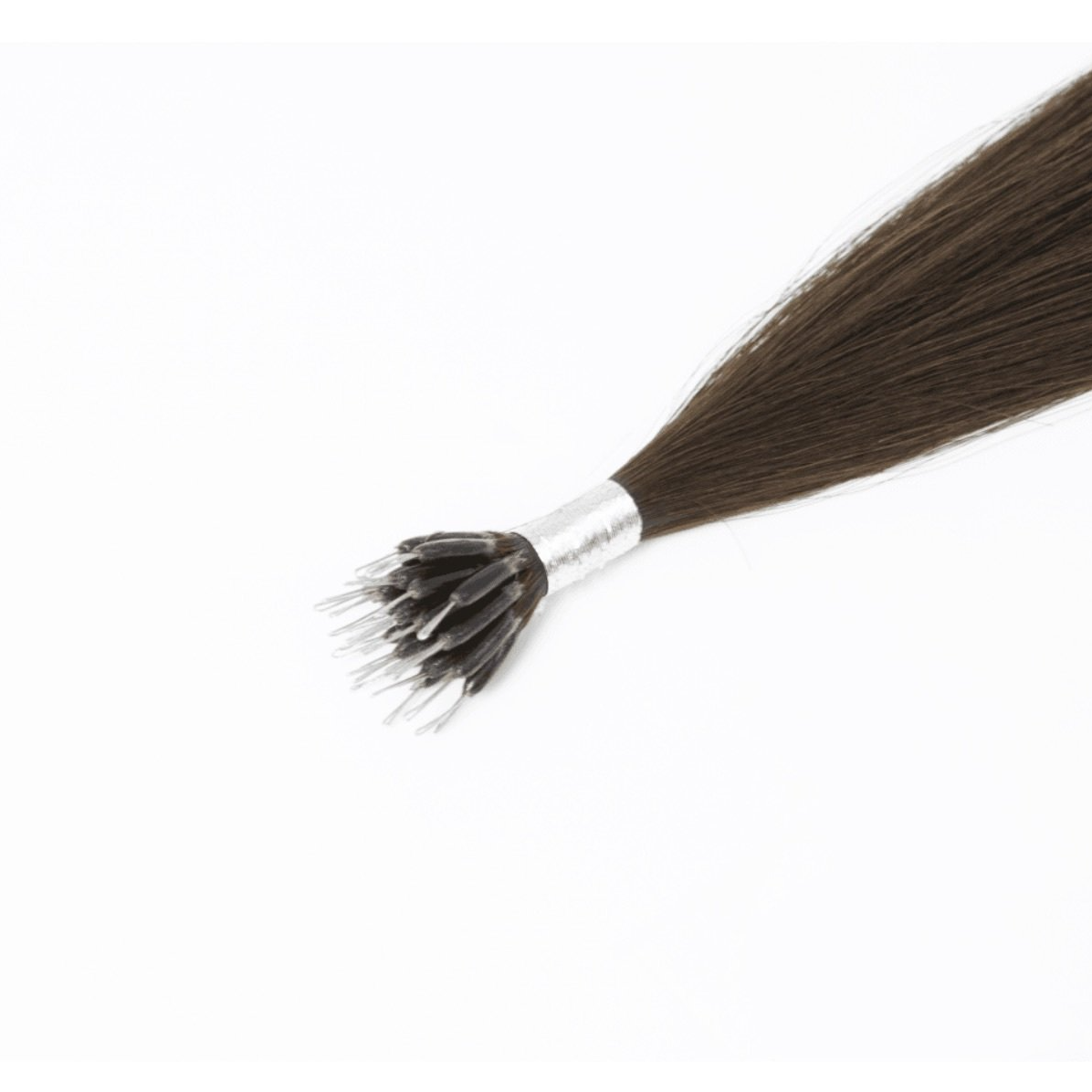 The NANO TIPS are measured 90% smaller than the traditional micro ring and are very safe, discreet and comfortable for you to wear. Nano tips are like other beaded methods in the way they are applied however, due to the beads being so small, the tip of the extension has a small plastic/metal tip to go into the bead. The hair is sectioned and a small silicone lined nano lock is applied to the hair, the tiny metal/plastic tip is put into the tiny bead and clamped shut. These are very easy to apply and remove, silicone is for maximum hold with no slipping, great for greasy hair types. Hair will last 8 weeks before maintenance is needed and hair will last 9-12 months depending on aftercare.